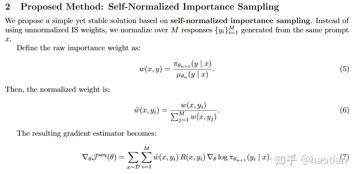 [4] PRINCIPLED POLICY OPTIMIZATION FOR LLMS VIASELF-NORMALIZED IMPORTANCE SAMPLING