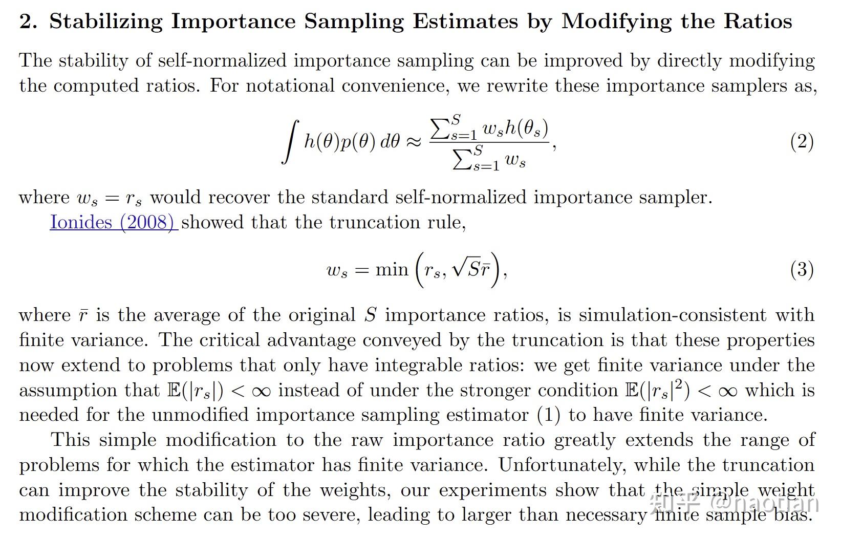 此时,variance是一个大头,可以牺牲一定的unbias换取low-variance。一个很直观的方法:self-normalized-importance-sampling(snis):