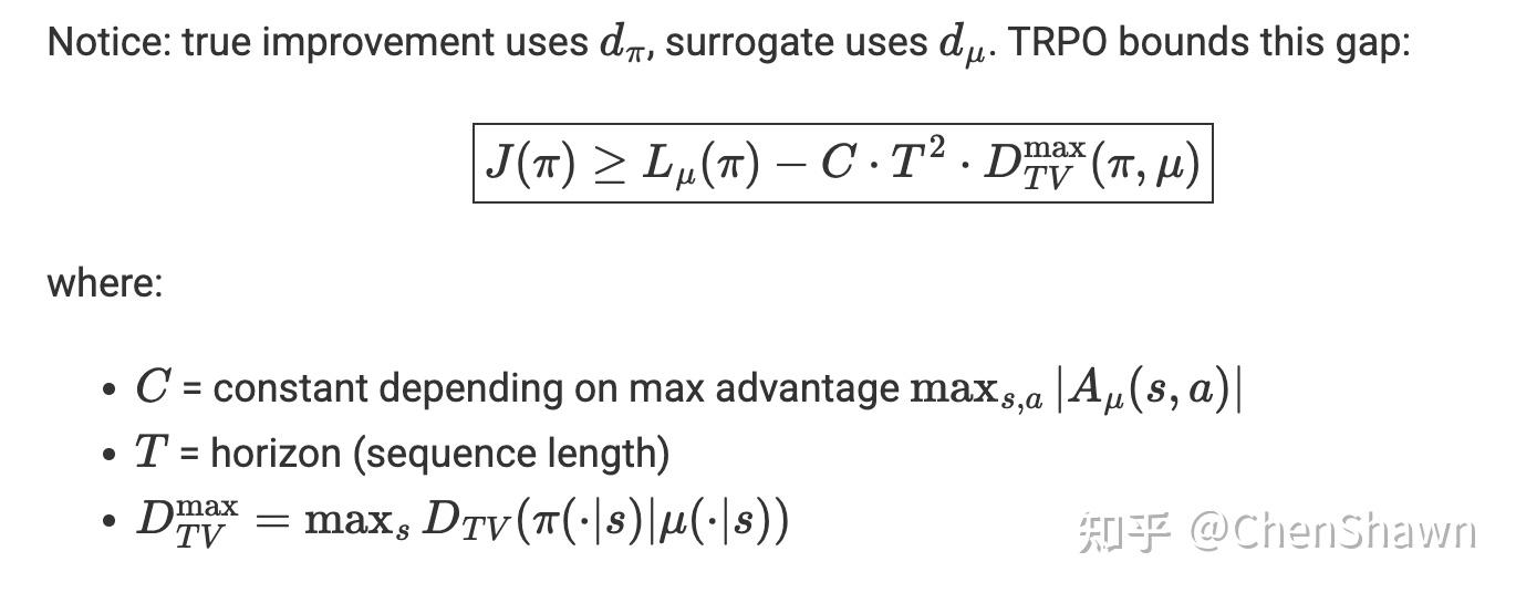 实际上像 LLM 这种固定 context length 的场景,假设最大 response length 为 T,可以用相同的方式推导出 bias 正比于 T 的平方,并且和 Total Variation Distance(的平方)有关