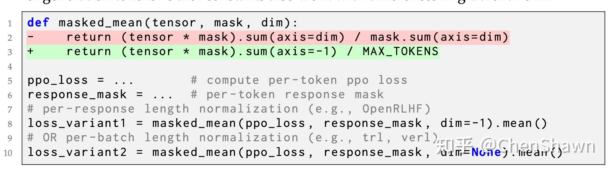 【路线一】GSPO 路线,给样本 sequence 的概率开 T 次根方,变成 geometric mean,不是一个好的解决方案,2025 年年初,DAPO 就已经讨论过算 loss 不能用 sequence-mean,Understanding R1-Zero-Like Training: A Critical Perspective 这个工作表示,如果害怕方差太大爆炸,除以一个固定常数更靠谱