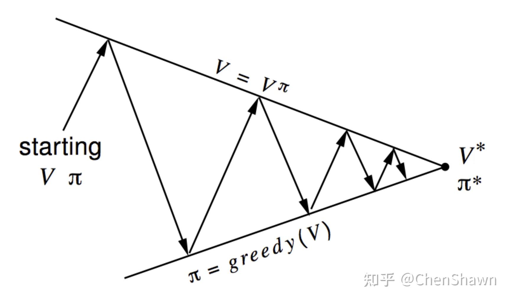 Pre-LLM 时代学过 RL 的人基本都见过下面这张图,这张图告诉我们:最优的 value estimation 等价于最优的 policy,value estimation 和 policy improvement 是可以相辅相承的