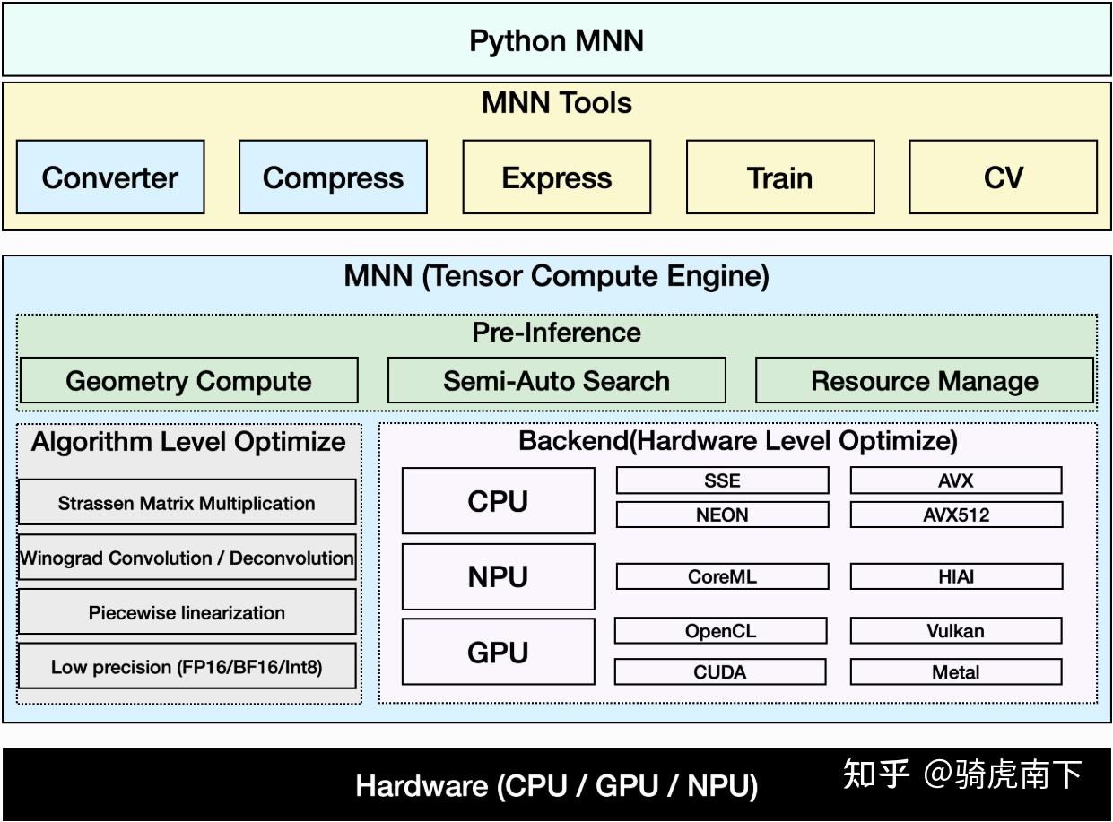 如上图,来源于MNN的介绍文档,借此图简单介绍整个CNN模型框架主要功能。