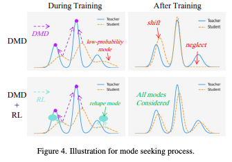 - RL 为蒸馏“提质”: RL 能够引导学生模型跳出教师分布中的低质量区域,覆盖更高奖励(如更高审美、更好对齐)的模式,从而解决蒸馏中的模式缺失(Zero forcing) 问题。