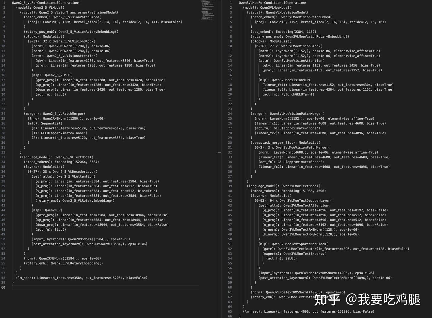 通过对比 Qwen2.5-VL 和 Qwen3-VL 的模型定义代码,我们可以直观地看到这场深刻的进化: