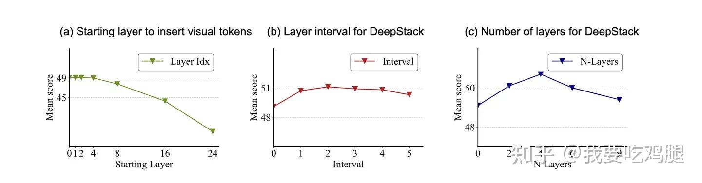 这些结论为 DeepStack 的高效实现提供了清晰的“配方”,也解释了为什么 Qwen3-VL 会选择将视觉特征注入到 LLM 的前几个层中。