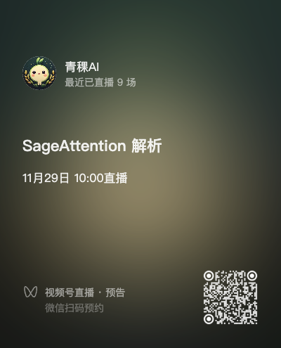 11月29日(周六)上午10点,青稞社区和减论平台将联组织青稞Talk 第93期,并邀请到清华大学博士生张金涛,直播分享《SageAttention & Sparse-Linear Attention & SpargeAttention:通过量化与稀疏性实现高效注意力机制》。