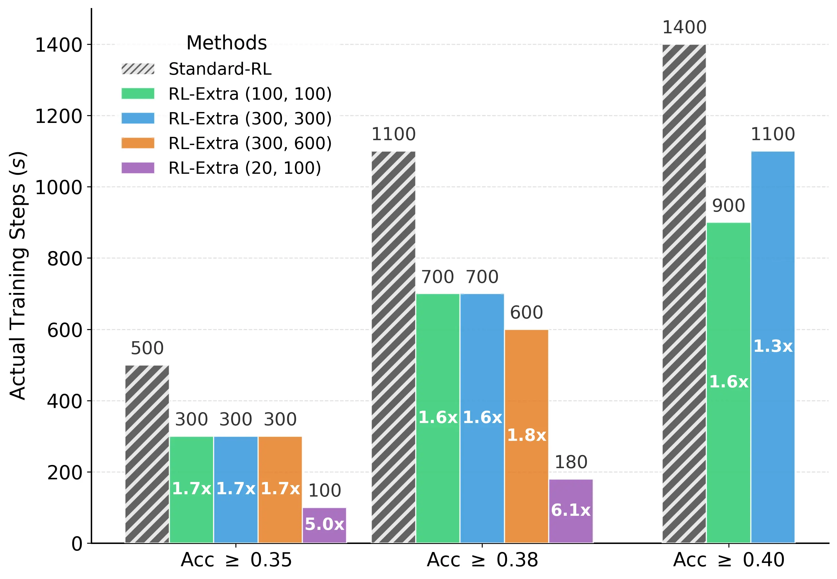 - 性能无损: 在各种算力预算下,RL-Extra 的表现均优于或持平于标准 RL 训练。