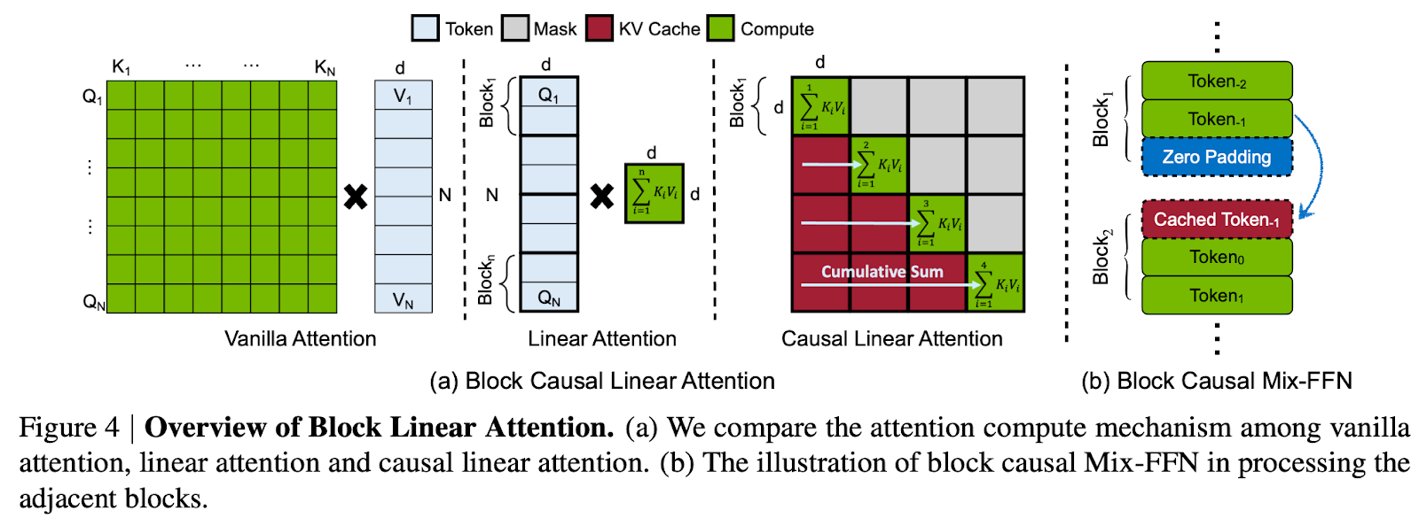 第二,面向块线性注意力的恒定内存 KV 缓存(Constant-Memory KV Cache):设计了一种基于块的自回归生成方法,利用线性注意力的累积特性构建一个恒定内存占用的状态缓存。该 KV 缓存使 Linear DiT 能够在固定内存开销下获取全局上下文信息,无需传统 KV 缓存,从而高效支持分钟级长视频生成。