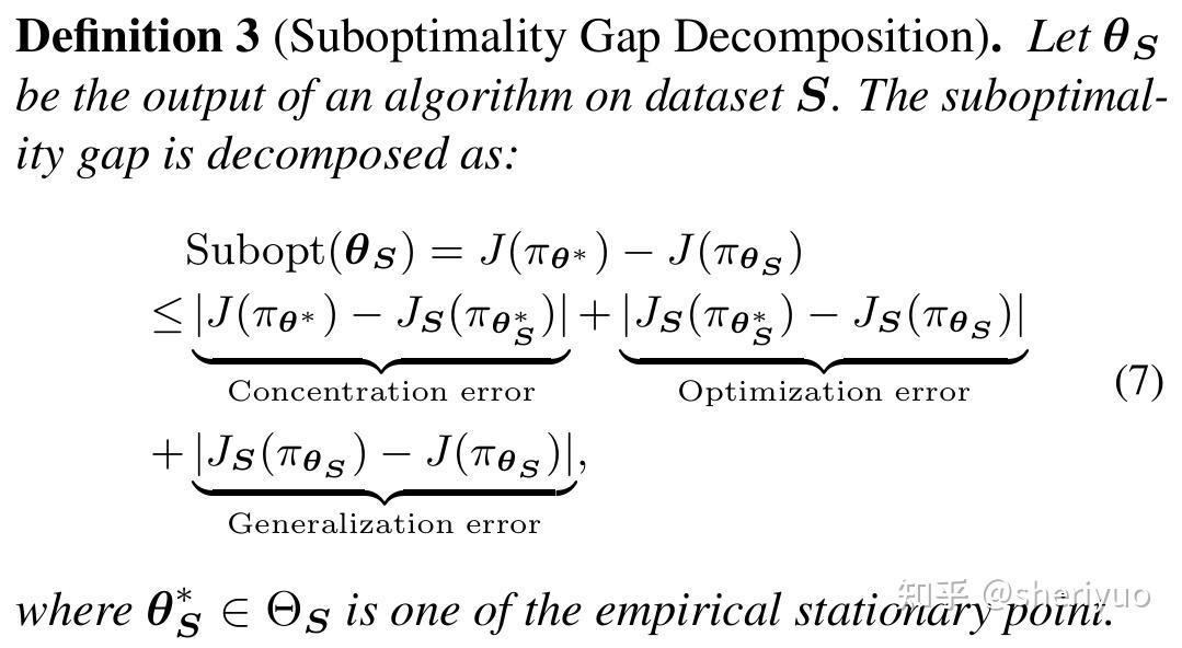 接下来要把“泛化误差/子最优性”分解清楚,并引入算法稳定性来控制泛化项。文章采用如下的子最优性分解思路