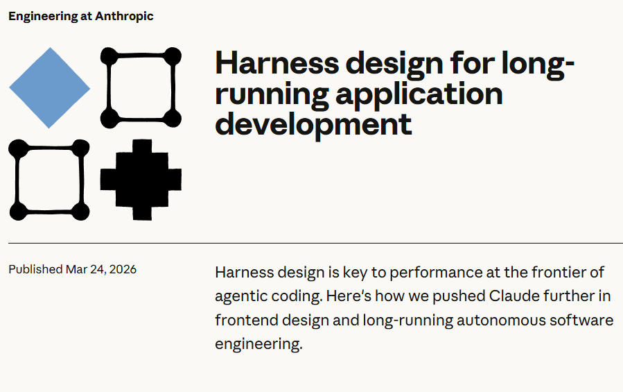 2026 年 3 月 24 日,Anthropic 发了一篇工程文章:Harness Design for Long-Running Apps。