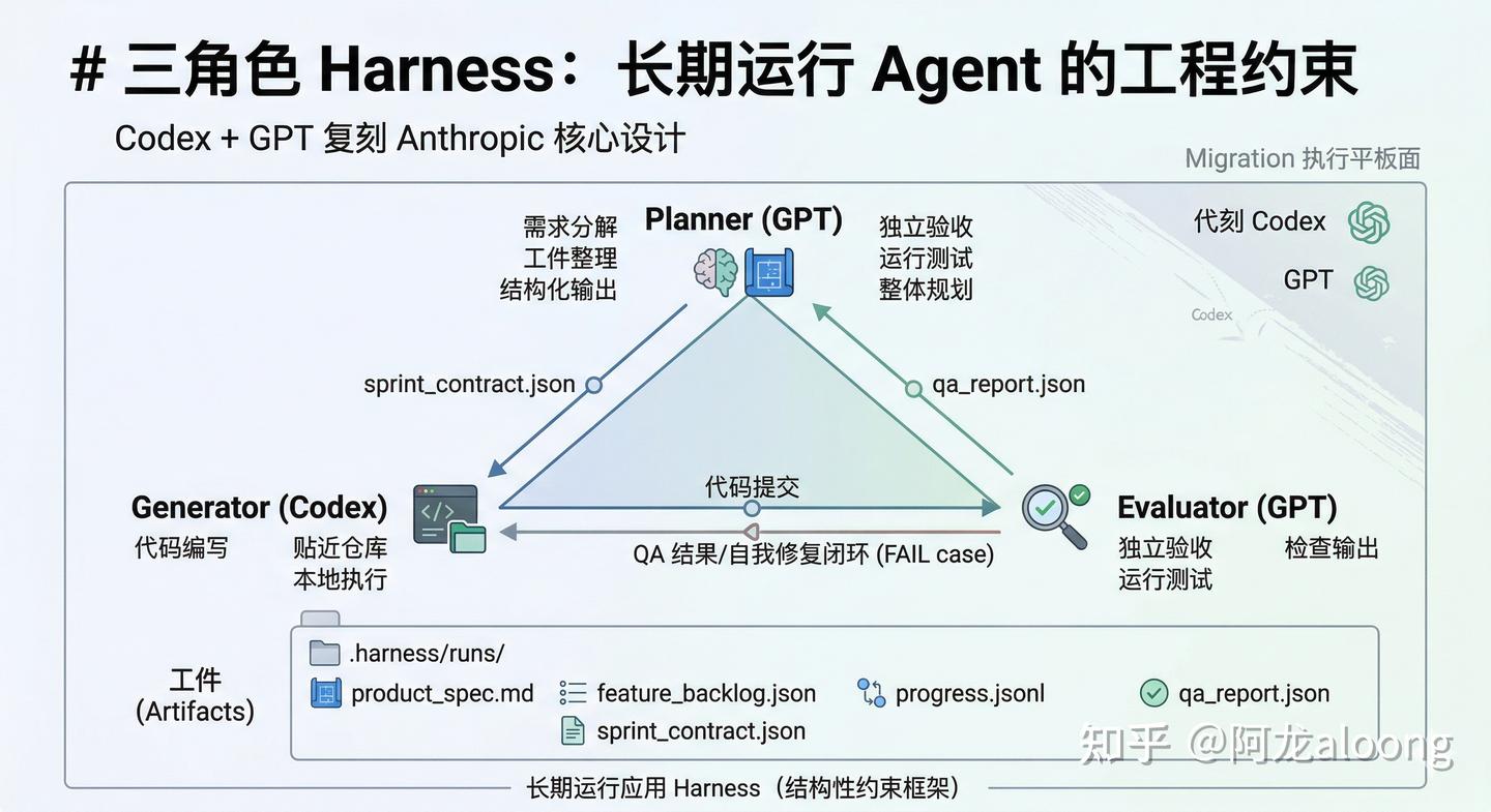 样本很小,统计上说明不了太多。但它已经展示出了 Anthropic 那篇文章里最重要的行为模式:generator 真实地改了代码,evaluator 独立地做了验收,第一轮失败后系统自己修了回来。