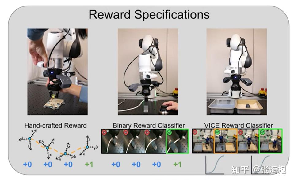 但是 VLA 时代我们更关注实际的机器人任务,这些任务中我们不再希望能对于每个任务都定义密集奖励 —— 因为我们不再关注离散个任务,而且泛化的一大族任务 —— 甚至每个任务都去定义稀疏奖励也嫌麻烦。