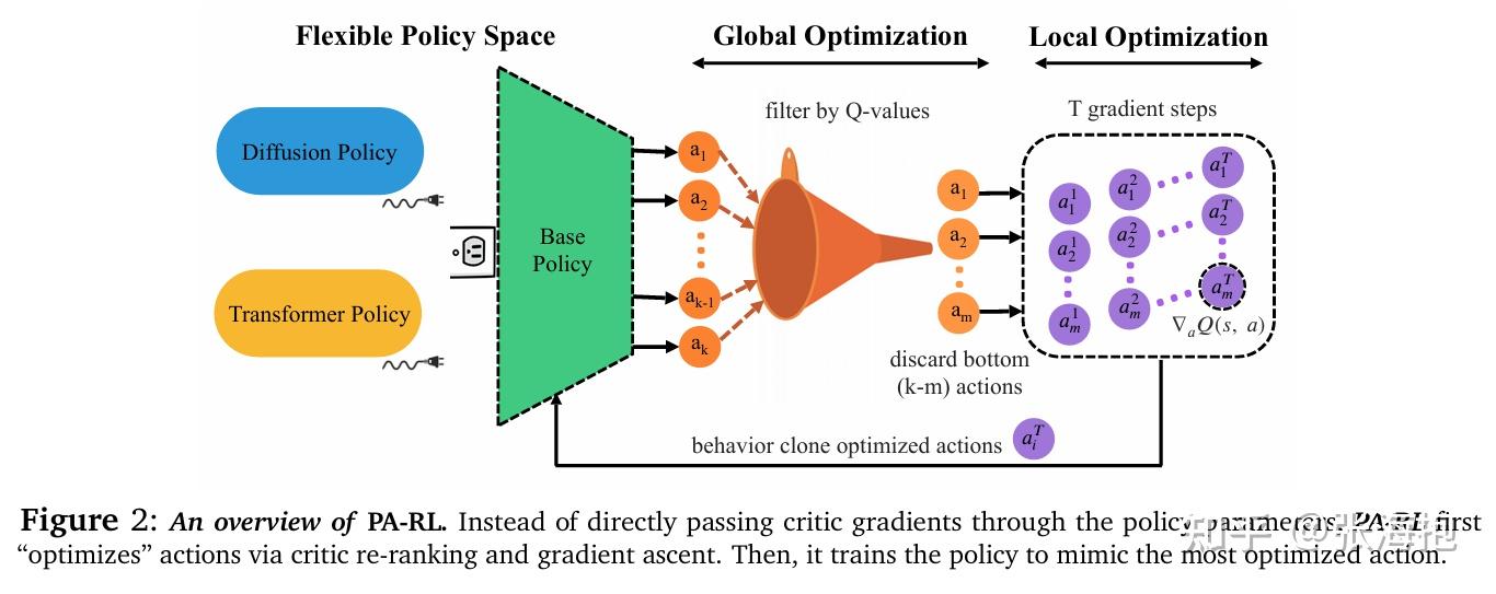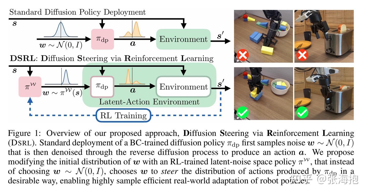 一句话概括?仍然针对 diffusion-based policy 做 RL,但是和上面文章不同的是,这里考虑固定 diffusion-based policy,而是增加一个先验分布策略,并且用 RL 去学习这个分布。