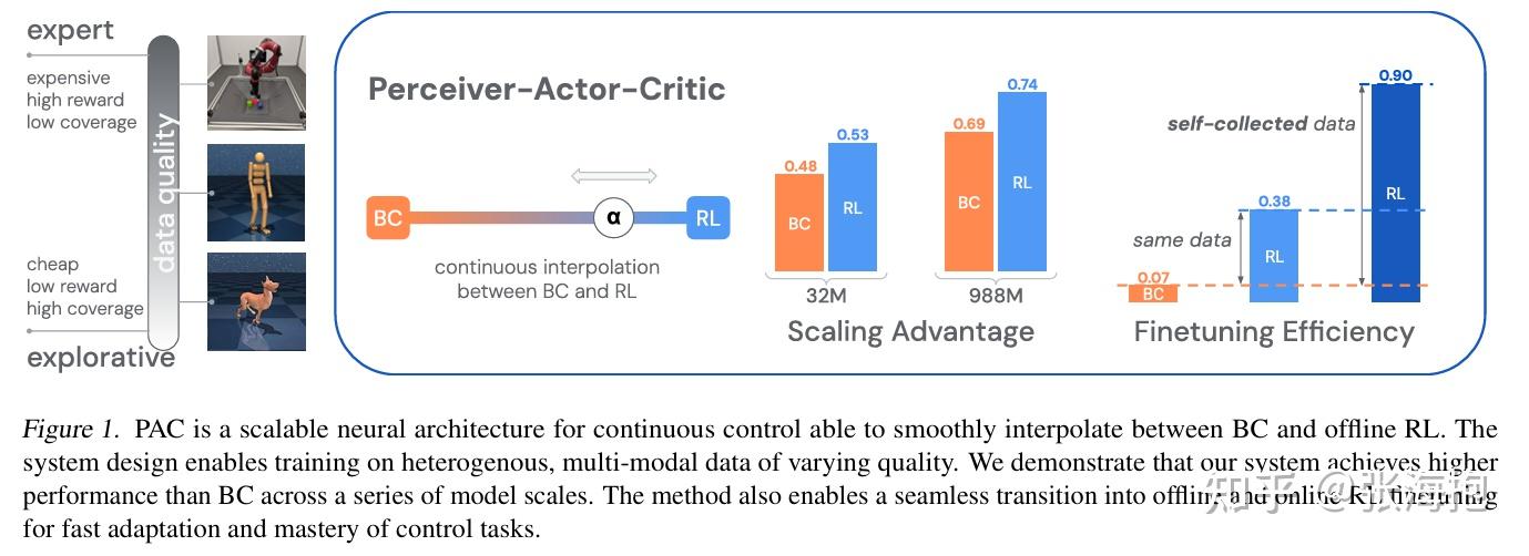 一句话概括?设计了一个能从 BC 过渡到 RL 的方法,使其能同时学习到 132 个不同连续控制任务的技能。
