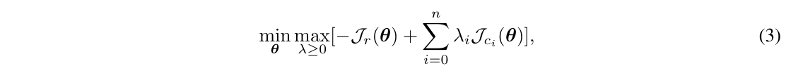 如何进行训练?采用 SafeRL 的框架,用一个拉格朗日系数把主奖励函数和惩罚项联系起来。然后对其做 RL。