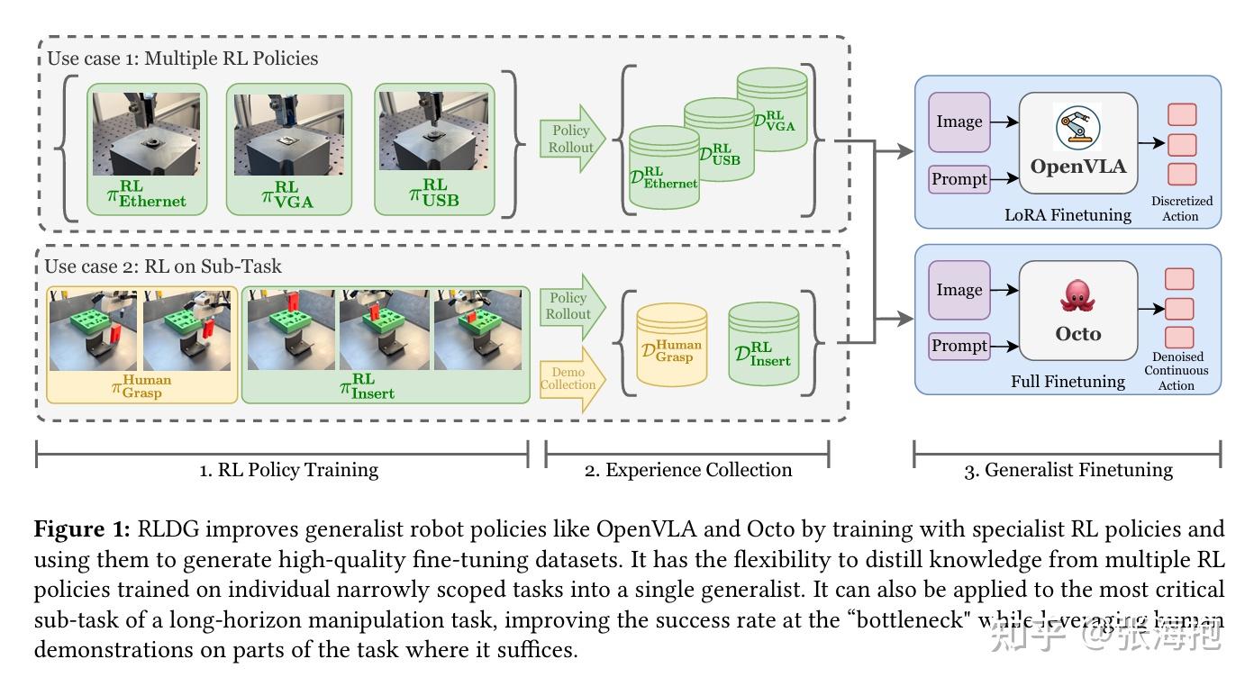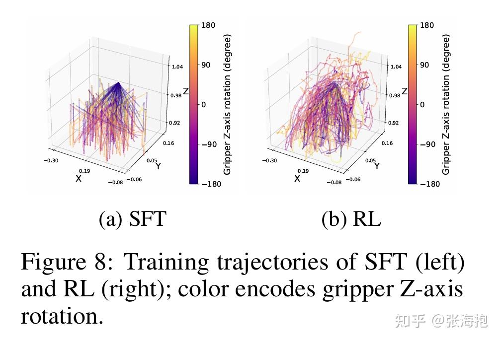 为什么要用 RL 策略采集到的数据做 VLA 的微调?因为 RL 的数据不仅执行上比人类更优,而且能够覆盖更丰富的状态,帮助模型更全面的学习。