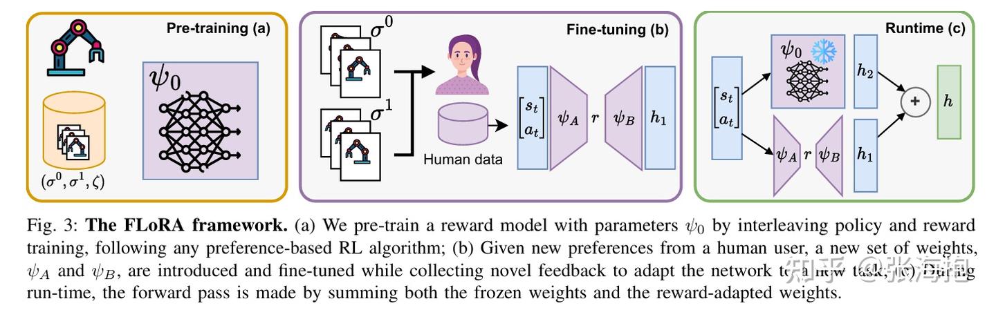 一句话概括?这篇文章所考虑的问题是,如果在新收集的偏好数据(风格偏好)上训练奖励函数,原本的奖励函数(可能涉及到任务完成成功率)可能学跑了。所以这里考虑用 LoRA 来微调奖励函数。