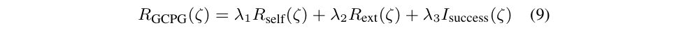 其中 R_{self} 指的是模型自身对于相应的轨迹产生改了高不高(避免外界评价很高的轨迹,但是模型就是不想这么学,硬掰不过来); R_{ext} 是让 GPT 分段产生的奖励函数,然后计算得到的数值; I_{success} 是稀疏奖励。