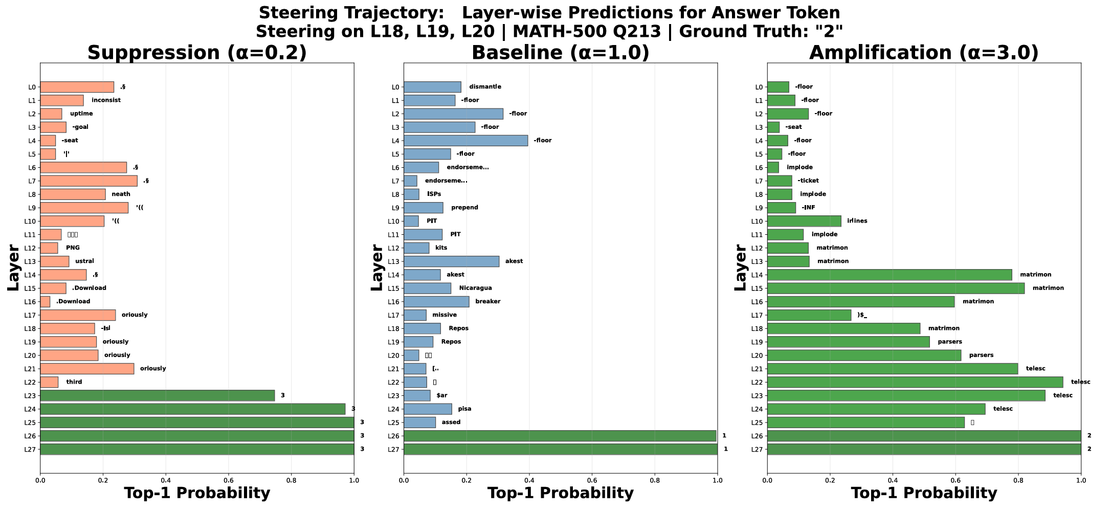 - 在第19层,目标答案首次出现高概率