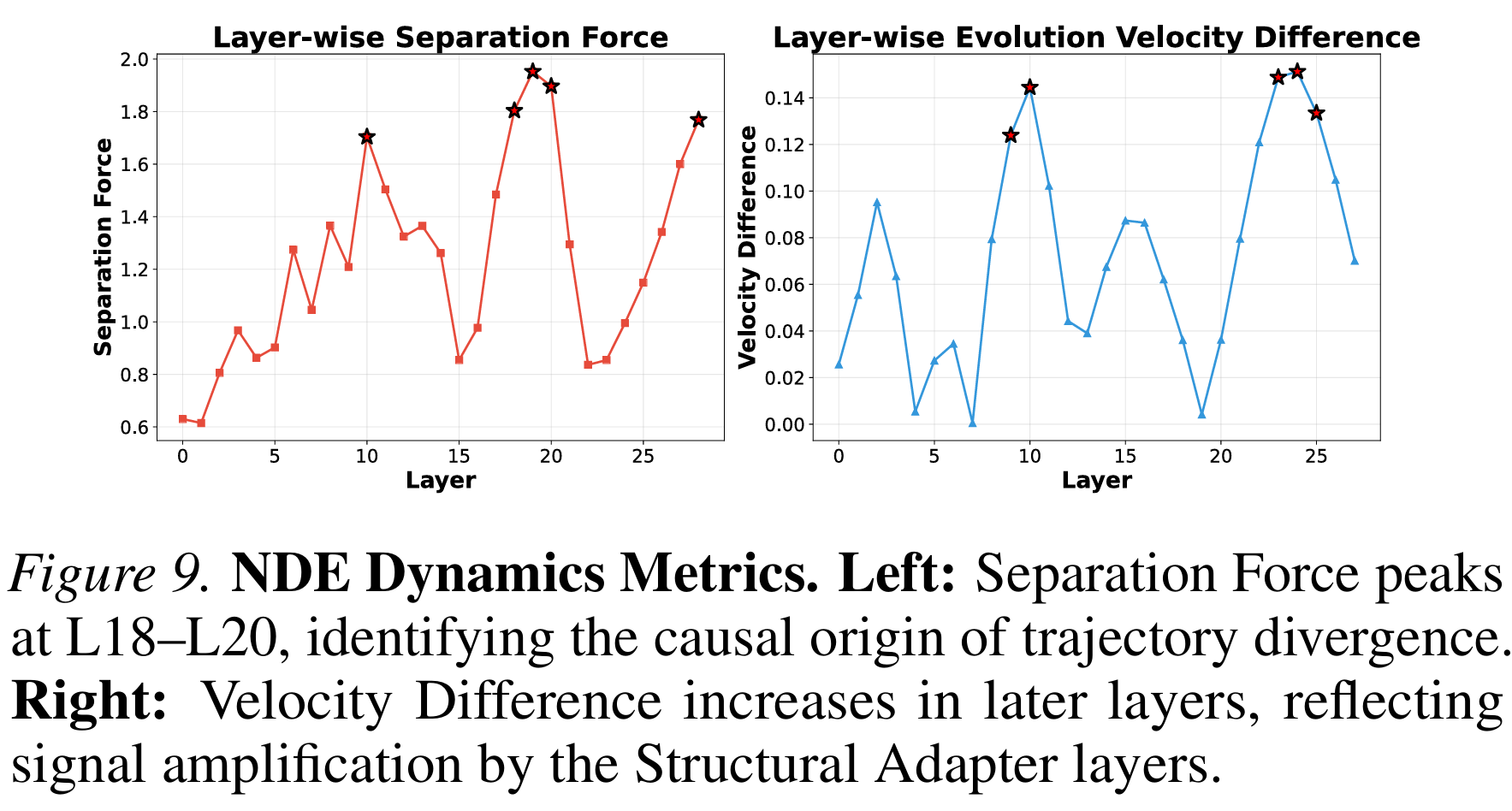 说明从此刻开始它们可能不是在存储新知识,而是在进行"结构适配":调整内部表征空间,以便容纳来自锚点层的突发信号。我们将这些层命名为"结构适配层(Structural Adapters)"。